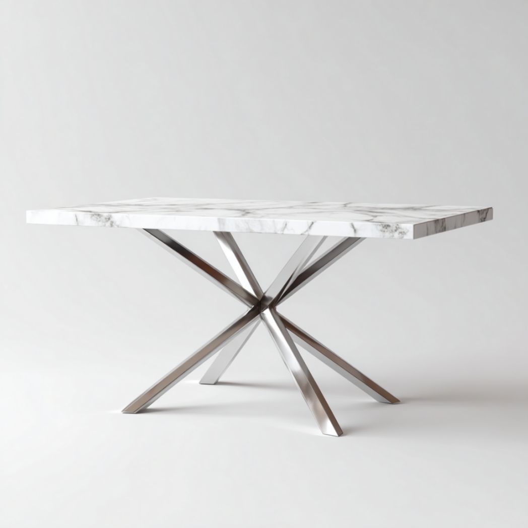 Table rectangulaire avec plateau en pierre et piètement en acier inoxydable